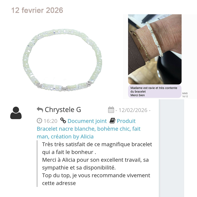 Bracelet nacre blanche, bohème chic, fait man, création by Alicia